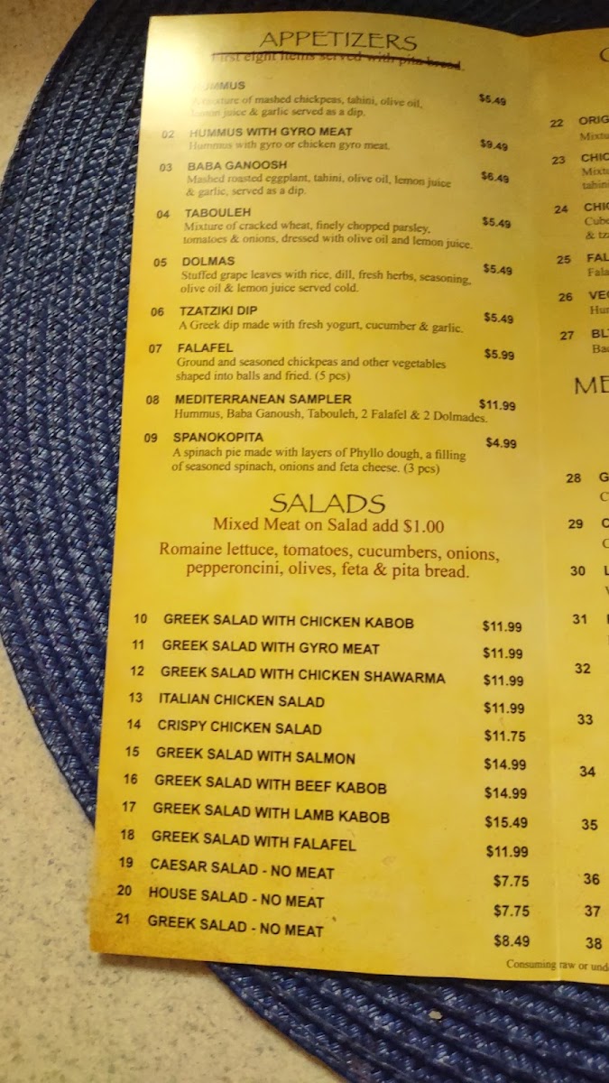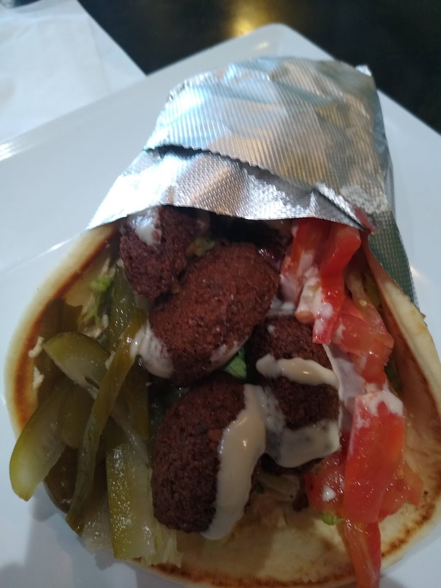 For those looking for something lighter, the Greek Salad with Chicken Shawarma is refreshing and fulfilling, combining crisp romaine lettuce with juicy shawarma and a signature tzatziki sauce. Vegetarians will delight in the Falafel Plate, featuring crispy falafel paired with vibrant tabouli and creamy baba ghanoush—a dish that stands out for its incredible flavor and texture.